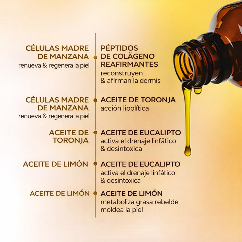 El aceite nutre profundamente la piel, dejándola radiante, hidratada y con un tono uniforme.